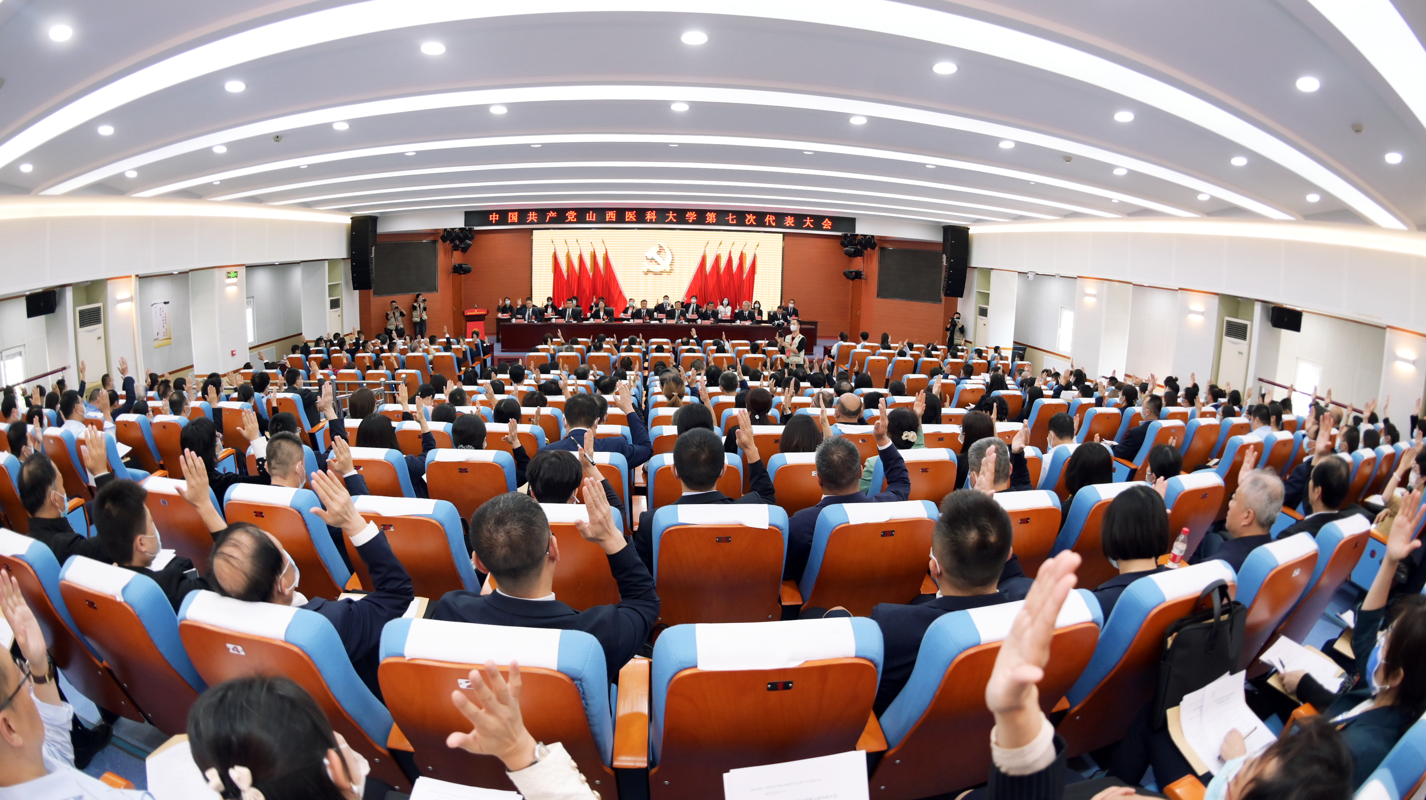 大會的主題是:以習近平新時代中國特色社會主義思想為指導,堅持社會主義辦學方向,全面貫徹黨的教育方針,以立德樹人為根本,積極融入國家戰略和衛生健康事業,主動服務山西轉型發展,助力健康中國、健康山西建設,團結帶領全校黨員干部、師生醫護員工,深化改革、創新實干、追求一流,為早日建成全國一流研究應用型醫科大學而努力奮斗。