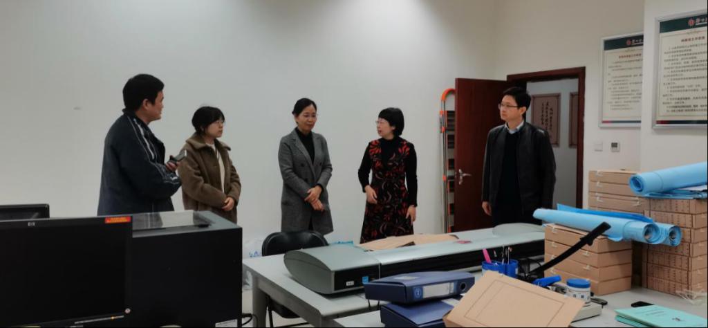 18日,調研組赴鄭州輕工業大學檔案館。該館館長蘇玉玲、副館長高文堂和楊朝欽等相關工作人員與調研組舉行座談交流。座談會上,蘇玉玲對c7c7.app同仁到來表示熱烈歡迎,簡要介紹了該校檔案館的建設歷程、發展現狀以及"十四五"規劃中檔案館的發展目標。牛樂簡要介紹了我館數字檔案館(室)發展現狀,并表示此次交流學習的目的在于學習該校獲批全國示范數字檔案室的先進經驗,謀劃推進我校數字檔案室建設工作。楊朝欽介紹了檔案館數字化建設歷程、應用系統建設、數字檔案資源建設、服務利用成效。雙方圍繞業務系統在線歸檔、電子簽章的使用、電子檔案的四性檢測等問題做了深入的探討和交流。隨后,調研組參觀了檔案加工室和特色成果展廳。