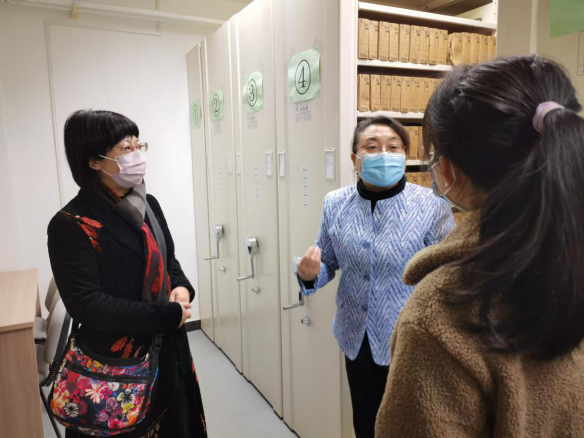 20日上午,在北京聯合大學檔案館,該館館長姜素蘭、副館長吳中平和相關工作人員帶領牛樂一行兩人參觀了檔案館庫房、校史館,舉行了座談交流會,分享了檔案館日常管理、史志編研、專利研發等方面的經驗。牛樂簡要介紹了我館基本情況,表示此行重點學習口述檔案、校史館建設和檔案編研等方面的先進經驗。