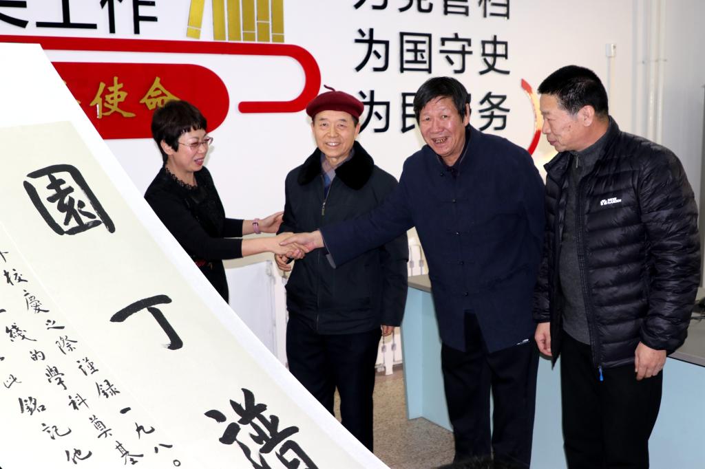 12月20日下午,我校原副校長鄭建偉同志向學校捐贈其本人書法作品《園丁譜》。捐贈儀式在學校檔案館服務大廳舉行,校工會主席周德杰、后勤保障處黨總支書記關安民、檔案館館長牛樂以及相關工作人員參加。