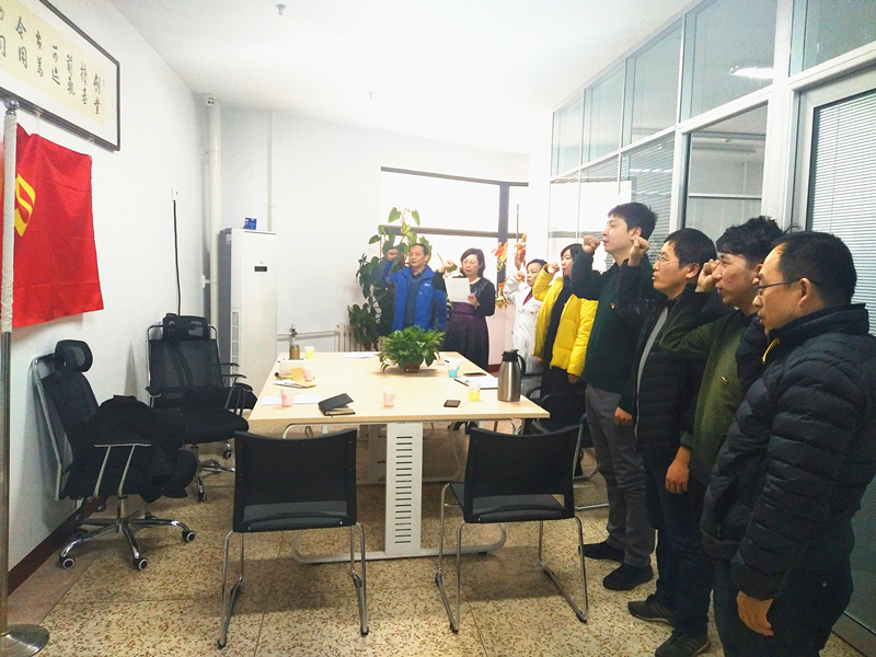 大會第一項(xiàng),重溫入黨誓詞。支部全體黨員在鮮紅的黨旗前,在牛樂書記的帶領(lǐng)下莊嚴(yán)宣誓,“我志愿加入中國共產(chǎn)黨......隨時(shí)為黨和人民犧牲一切......”,一聲聲洪亮的誓言為本次支部大會拉開帷幕。
