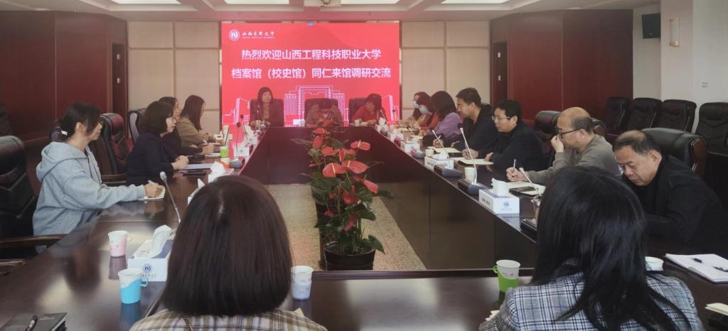 會上,牛樂對山西工程科技職業大學檔案館同仁的來訪表示歡迎,王永敏簡要介紹了館內基本情況與信息化建設情況。隨后,牛樂介紹了我館近三年檔案工作情況,分享了檔案資政育人服務、檔案資源建設、聲像檔案和口述檔案建設成果、電子文件歸檔管理中的經驗做法,與會人員就檔案數字化建設相關問題進行了深入探討與交流。