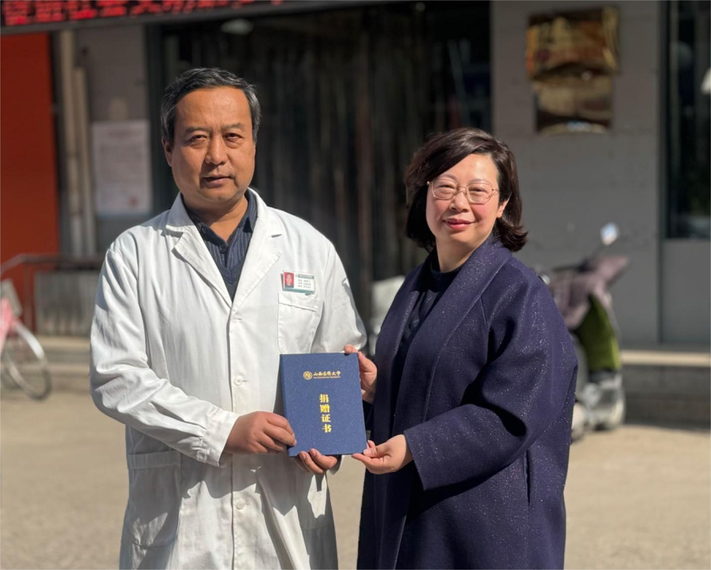 牛樂代表檔案館向馮根耀醫(yī)生表示感謝,并授予捐贈(zèng)證書。此次捐贈(zèng)的醫(yī)學(xué)教材,填補(bǔ)了我校檔案館藏關(guān)于“山西醫(yī)學(xué)傳習(xí)所”時(shí)期的空白。同時(shí)捐贈(zèng)的醫(yī)書對(duì)于醫(yī)學(xué)研究和文獻(xiàn)研究具有極高價(jià)值。