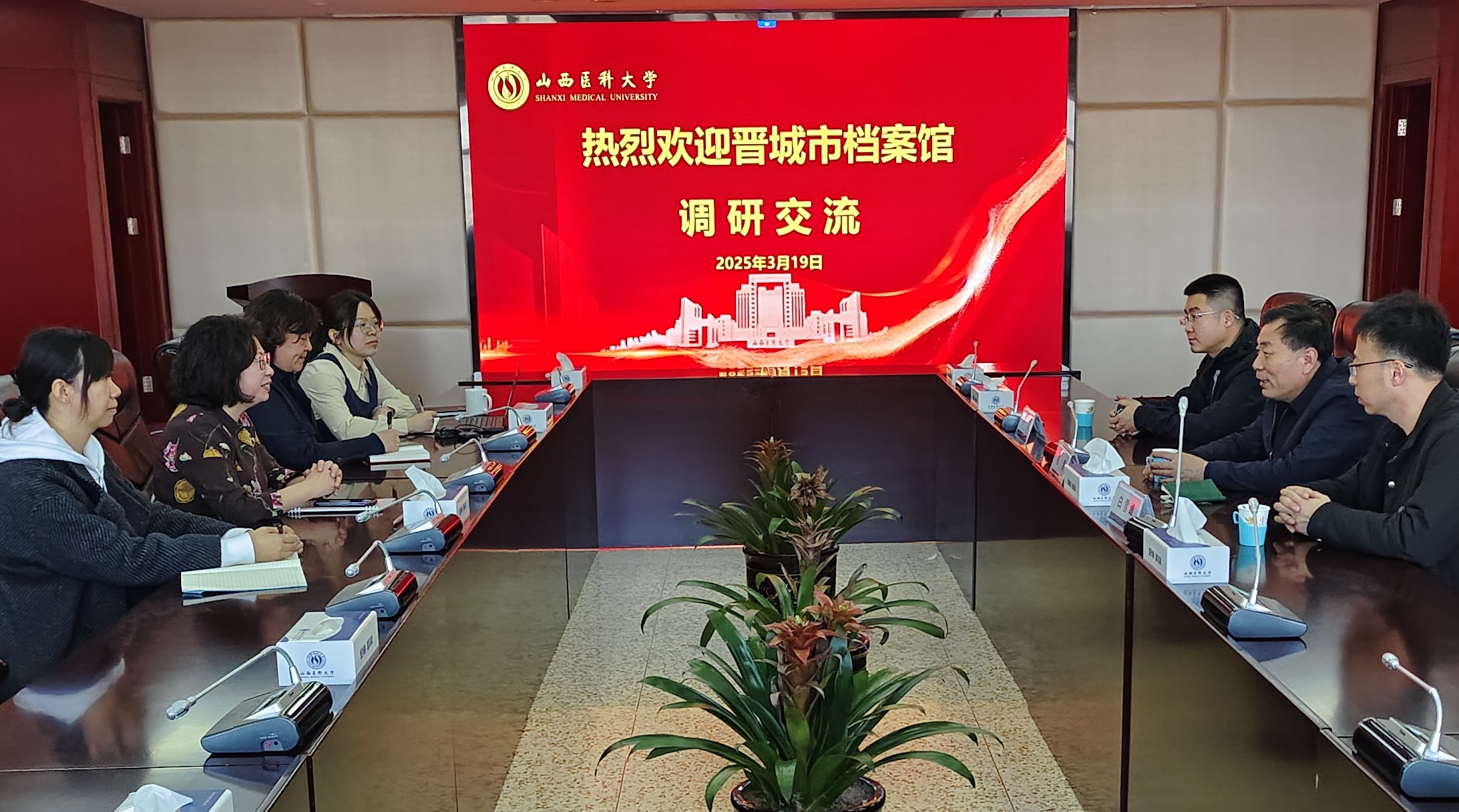 3月19日下午,晉城市檔案館館長程鵬一行2人來我校檔案館調研。檔案館館長牛樂及各科室負責人參加座談交流。