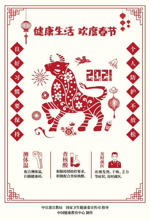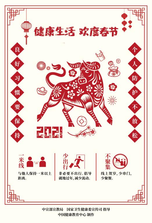 為做好春節期間疫情防控健康教育和健康科普工作,中宣部宣教局、國家衛生健康委宣傳司聯合制作發布了疫情防控知識宣傳海報,請各院系各部門轉發本單位師生醫護員工學習掌握,請相關部門和院系據此做好橫幅和版面的制作與使用。