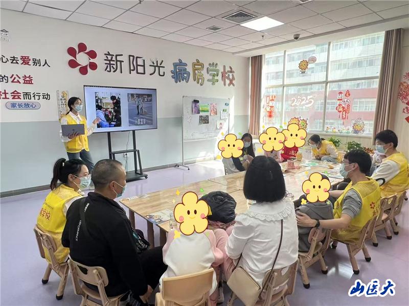 4月10日下午,兒科醫學系研究生黨支部在省兒童醫院血液科“新陽光病房學校”開展“醫者童心 慧聲繪色”主題黨日活動,本次活動由輔導員范晉楠帶隊。