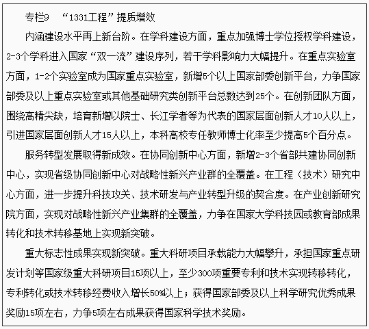 ——高等教育實現(xiàn)“高原上起高峰”。聚焦內(nèi)涵式、高質(zhì)量發(fā)展,持續(xù)推動“1331工程”提質(zhì)增效,高等學(xué)校分類發(fā)展體系進(jìn)一步完善。研究生教育規(guī)模穩(wěn)步擴(kuò)大。新一輪“雙一流”建設(shè)和學(xué)科評估實現(xiàn)重要突破。推動本科專業(yè)升級換代,新工科、新醫(yī)科、新農(nóng)科、新文科建設(shè)取得突破性進(jìn)展。