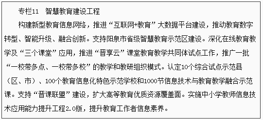 為貫徹落實國務(wù)院《“十四五”教育發(fā)展規(guī)劃》和《山西省國民經(jīng)濟(jì)和社會發(fā)展第十四個五年規(guī)劃和2035年遠(yuǎn)景目標(biāo)綱要》《山西教育現(xiàn)代化2035》,加快構(gòu)建高質(zhì)量教育體系,制定本規(guī)劃。