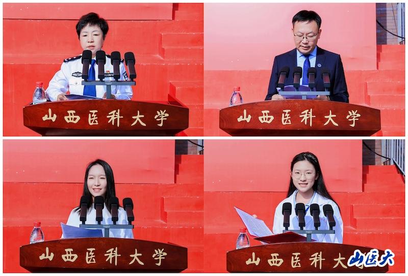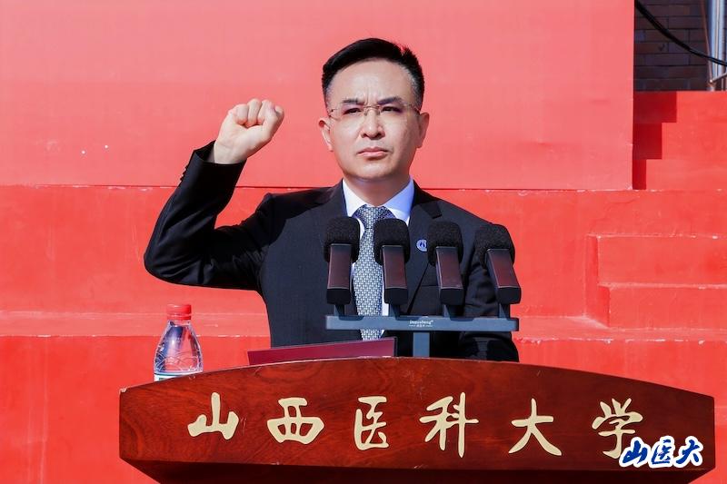 解軍在講話中代表全校師生醫(yī)護(hù)員工對(duì)2025級(jí)新同學(xué)表示熱烈歡迎,對(duì)晉中市委、市政府帶給全體新同學(xué)們的溫暖與關(guān)懷表示感謝。他指出,學(xué)校在106年的辦學(xué)歷程中,積淀的優(yōu)良傳統(tǒng)和文化品質(zhì)傳承歷久彌新,閃耀著時(shí)代光芒。我們山醫(yī),是一所浸潤五四精神、傳承紅色血脈的百年醫(yī)學(xué)學(xué)府,一所勇挑時(shí)代重任、服務(wù)國家戰(zhàn)略的百年醫(yī)學(xué)學(xué)府,一所不斷砥礪奮進(jìn)、勇于追求卓越的百年醫(yī)學(xué)學(xué)府。山醫(yī)的百年榮光,由前輩鑄就;山醫(yī)的未來輝煌,將由同學(xué)們書寫。作為師長和校長,解軍以“做‘有理想、敢擔(dān)當(dāng)、能吃苦、肯奮斗’的新時(shí)代好青年”為題,向新同學(xué)們提出四點(diǎn)希望:一是立受閱方陣之志,鑄就忠誠報(bào)國魂;二是淬鐵血擔(dān)當(dāng)之勇,磨礪攻堅(jiān)硬脊梁;三是歷千錘百煉之苦,鍛造過硬真本領(lǐng);四是揚(yáng)團(tuán)結(jié)奮進(jìn)之風(fēng),譜寫時(shí)代新華章。他祝愿同學(xué)們?cè)谏结t(yī)這片孕育英才的沃土上,學(xué)有所成,業(yè)有所精,夢(mèng)想成真,前程似錦。