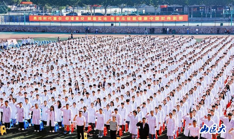 第二臨床醫(yī)學(xué)院黨委書記安健領(lǐng)誓《醫(yī)學(xué)生誓言》。全體新生身穿圣潔的白大褂,排列整齊,高舉右拳莊嚴(yán)宣誓,堅(jiān)定作為一名醫(yī)學(xué)生的初心使命,誓言鏗鏘有力。
