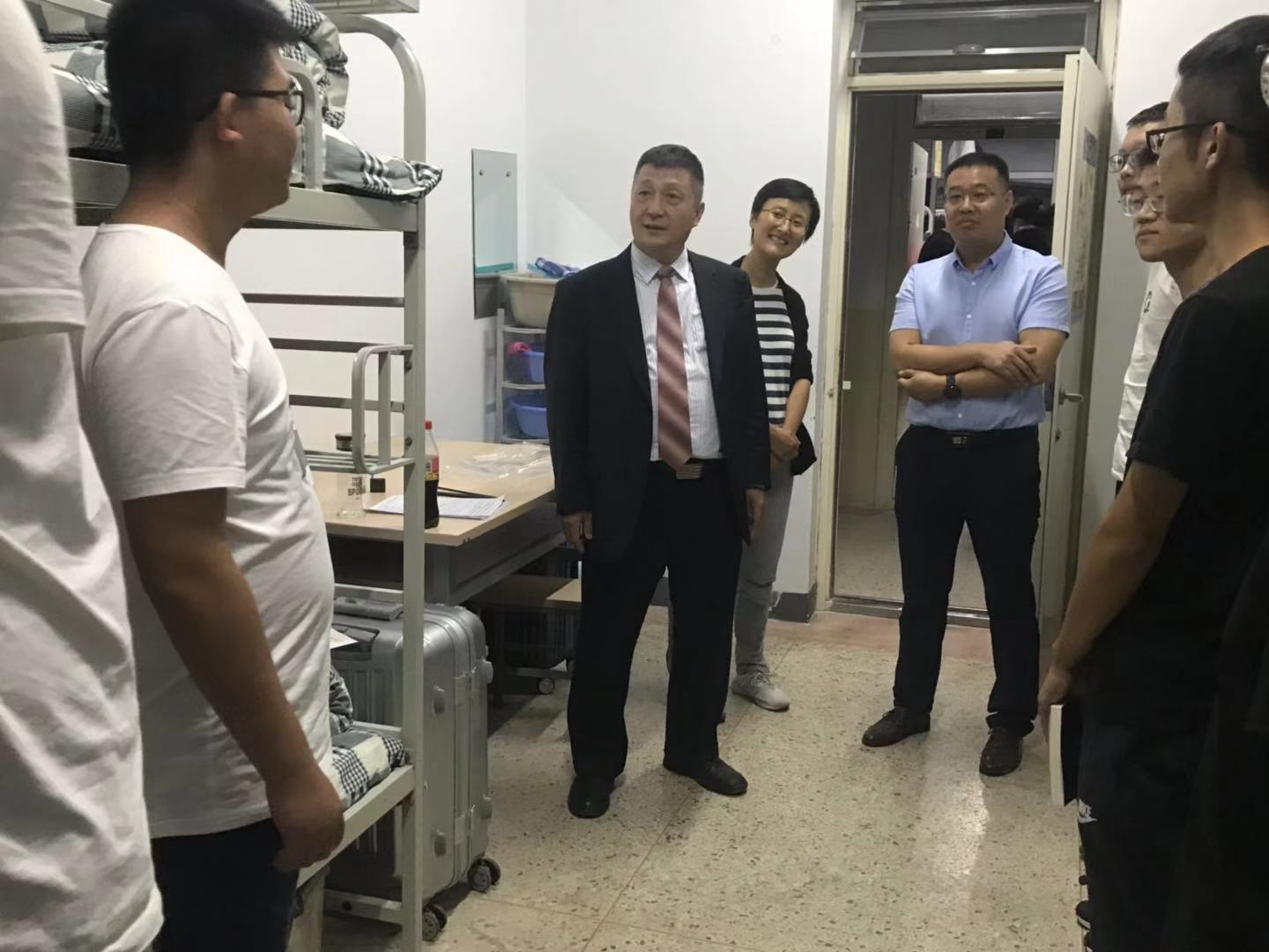 9月8日晚,帶著對新生的牽掛,我校法醫學院院長贠克明、副院長孫俊紅、副書記李巖及2018級輔導員盧珊,來到學生公寓,看望2018級新生并慰問迎新工作人員。