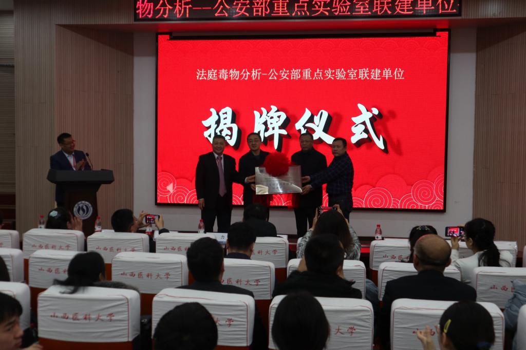 12月28日晚,法庭毒物分析-公安部重點實驗室聯建單位揭牌儀式在我校中都校區基礎報告廳舉行。校黨委常委、副校長刁海鵬,北京市公安局刑事偵查總隊副總隊長劉力,北京市公安局刑事偵查總隊八支隊(法醫檢驗支隊)副支隊長焦章平,法醫學院黨總支書記、院長、司法鑒定中心主任贠克明共同為法庭毒物分析-公安部重點實驗室聯建單位揭牌。儀式由法醫學院副院長孫俊紅主持。吉林出入境檢驗檢疫局技術中心主任牟峻,司法鑒定科學研究院原書記、院長沈敏,黑龍江省公安廳刑事技術總隊副總隊長顧明波,南方醫科大學司法鑒定中心法醫系教授闞文宏,法醫學院領導班子成員和師生200余人參加儀式。