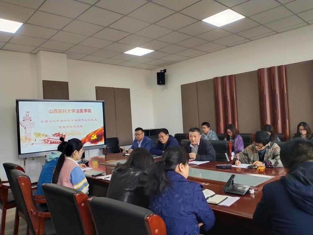 10月31日9:30-12:00,法醫(yī)學(xué)院在學(xué)院會(huì)議室召開(kāi)學(xué)用習(xí)近平新時(shí)代中國(guó)特色社會(huì)主義思想經(jīng)驗(yàn)交流會(huì),學(xué)院全體教工黨員共26人參會(huì),學(xué)院教工黨支部書(shū)記梁新華主持會(huì)議。