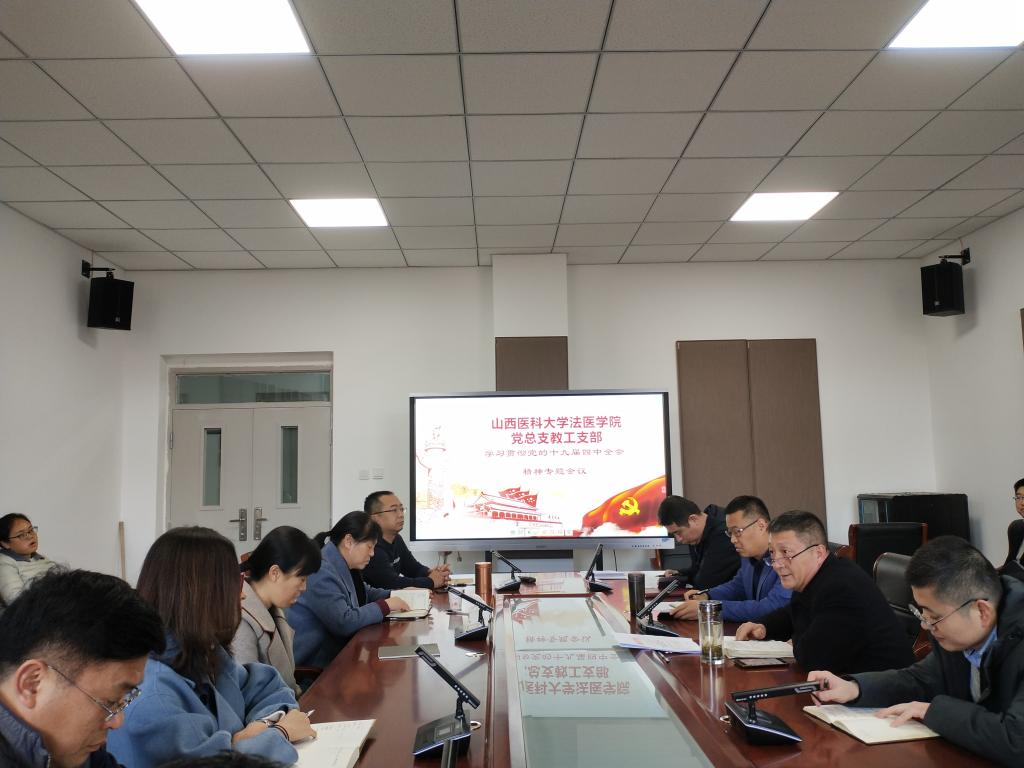 2019年11月27日下午,法醫(yī)學(xué)院教工黨支部在法醫(yī)學(xué)院會議室召開學(xué)習(xí)黨的十九屆四中全會精神專題會議,教工黨支部26名黨員參加會議,會議由教工黨支部書記梁新華主持。