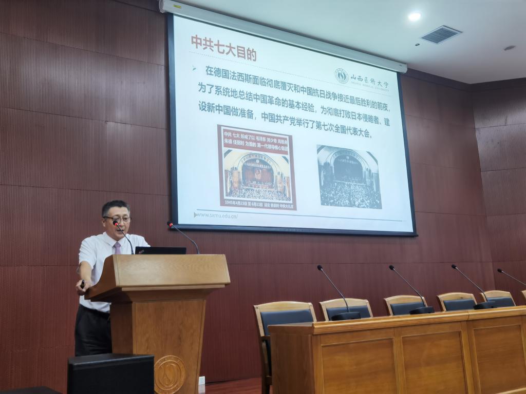 本次黨史學習教育的主題為“學黨史、講院史、聚人心、謀發展”。贠克明老師從中國共產黨第七次全國代表大會談起,圍繞中共七大的準備過程、目的、內容等,介紹了中共七大最重大的歷史功績是確定了黨的政治路線,克服了黨內的錯誤思想,從而使全黨在馬克思列寧主義、毛澤東思想的基礎上達到了空前的團結,并確立毛澤東思想為黨的指導思想。七大之后,全黨同志團結一致,為推進中國革命的歷史進程努力奮斗,終于在1949年取得了新民主主義革命的偉大歷史勝利。隨后,贠克明老師又介紹了毛澤東致七大閉幕詞-《愚公移山》,他指出愚公移山精神的實質就是艱苦奮斗精神,這種精神,是一種百折不撓、頑強拼搏的堅韌斗志,一種自強不息、勇往直前的奮進狀態,一種埋頭苦干、勤勤懇懇的務實作風。他希望老師、同學們在日常工作學習中,也要弘揚愚公移山精神,并將這個品質一代代傳承下去,為學校、學院、自身的發展做貢獻。