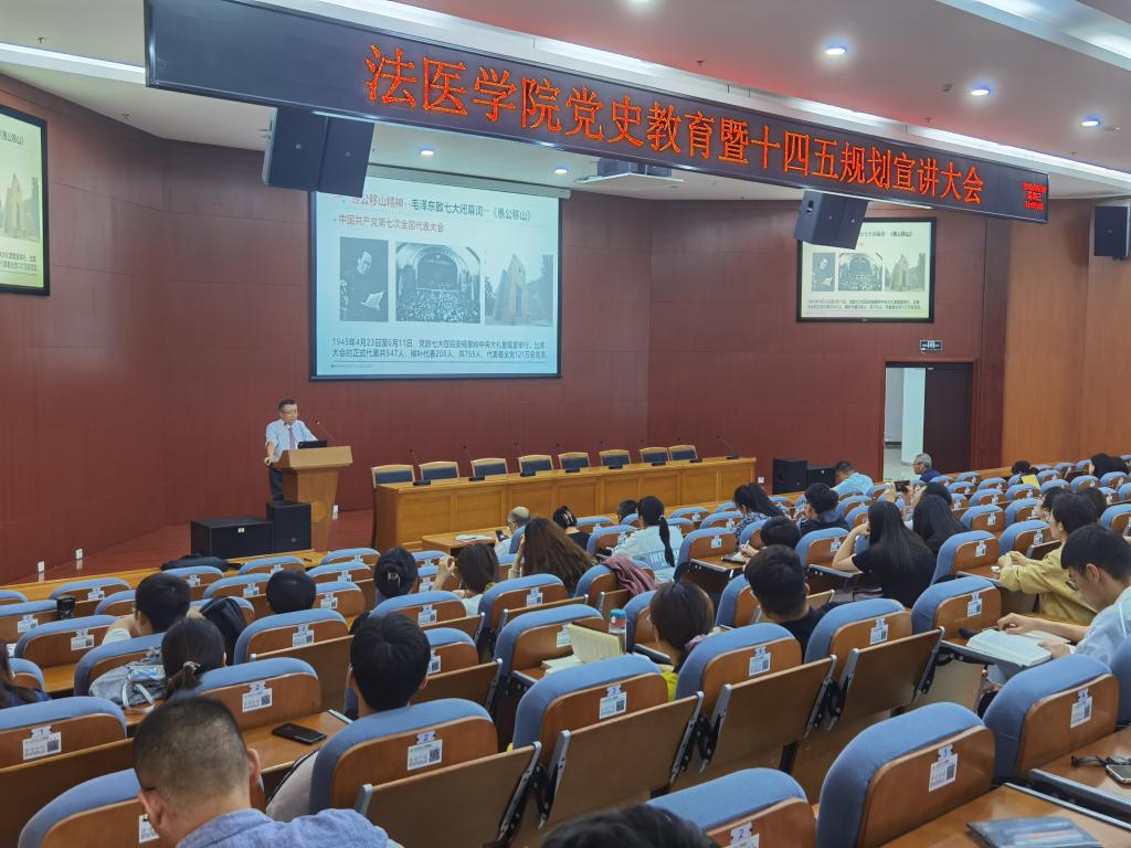 接著,贠克明老師又講述了法醫學院的發展史、對“十三五”進行總結、對“十四五”進行規劃、表明我們學院目前面臨的困難、對所有老師和學生該如何做提出建議。“十三五”期間法醫學院創造了多個“第一”,成績突出。他希望在“十四五”期間,我們學院在科學研究、人才培養、學科建設、司法鑒定、團隊建設和平臺建設方面都有更大的進步。這就要求全體法醫人要充分把握時局變化,切實理清學校“十四五”時期發展基本思路;科學錨定目標任務,奮力打好學校“十四五”事業發展的開局之戰;響應張俊龍書記號召,在習近平新時代中國特色社會主義思想的指導下,牢記初心使命,堅持立德樹人根本任務,堅持為黨育人、為國育才,在關鍵之年展現關鍵作為,以更加飽滿的熱情更加扎實的工作,共同譜寫c7c7.app事業發展的新篇章。