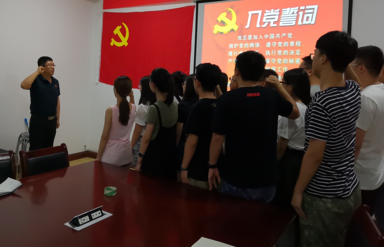 其次,由研究生黨支部書記劉佳佳同志帶領全體黨員重溫入黨誓詞。錚錚誓言化作每一名共產黨員的職責使命,提醒我們每名黨員要不忘初心,以只爭朝夕的精神、時不我待的干勁,堅守黨性原則,堅定理想信念,在履職盡責中干出優異成績。