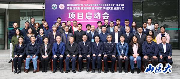11月14日,國家重點研發計劃“公共安全風險防控與應急技術裝備”重點專項“毒品違法犯罪監測預警關鍵技術研究和應用示范”項目啟動會在江蘇南京中國藥科大學舉行,我校科技處副處長王曉輝、法醫學院尉志文副教授率隊參加。來自政府、高校、企業、醫療團隊等四方的專家精英匯聚一堂、強勢組隊,攜手探索對抗高科技毒品的破解之法。中國藥科大學黨委書記金能明,教育部、國家禁毒委員會辦公室、咨詢專家組、各課題單位等專家領導出席本次會議。