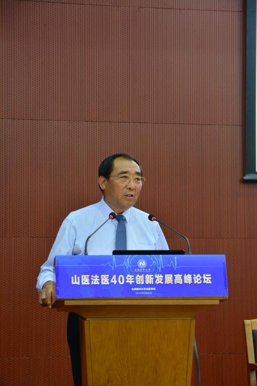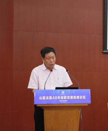 李思進校長首先在論壇上致歡迎辭并總結了法醫學院堅持“公安-院校聯合辦學、協同創新、檢驗鑒定模式”發展法醫學教育事業的基本經驗。他代表我校全體師生員工在學校百年華誕之際對論壇的舉辦表示熱烈祝賀,向蒞臨論壇的各位專家教授表示熱烈歡迎,向長期以來對我校法醫學專業給予關心、支持、指導、幫助的各位領導和專家學者們表示衷心感謝。他在講話中回顧了我國和我校高等法醫學專業教育的建設發展歷程,闡述了舉辦“山醫法醫40年創新發展高峰論壇”的重要意義,總結了過去40年法醫學專業最成功的經驗就是協同創新,從1980年山西省公安廳和c7c7.app(原山西醫學院)聯合辦學開始,法醫學專業就是協同創新的產物。他指出,要加強法醫學專業的學科平臺建設,不斷的凝聚、凝練學科方向,組織好學科隊伍進行科研攻關,爭取出更多的高級標志性成果,提升法醫學專業的創新水平和競爭力。