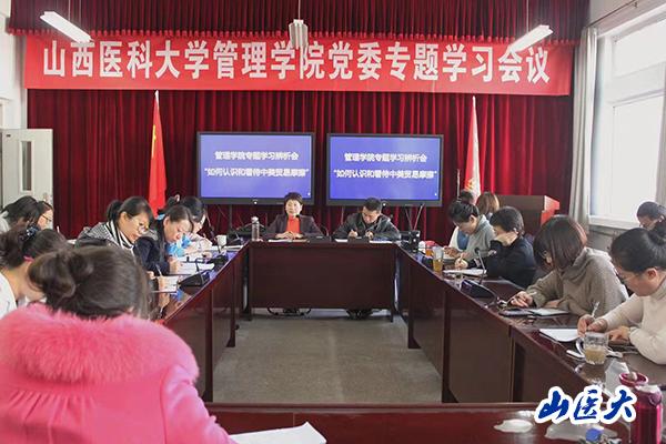 11月23日,管理學(xué)院黨委理論學(xué)習(xí)中心組召開擴大會議,就“如何正確認識和看待中美貿(mào)易摩擦”進行專題學(xué)習(xí)討論和辨析。院黨委書記李紅梅主持會議,學(xué)院全體教工參加了學(xué)習(xí)討論。