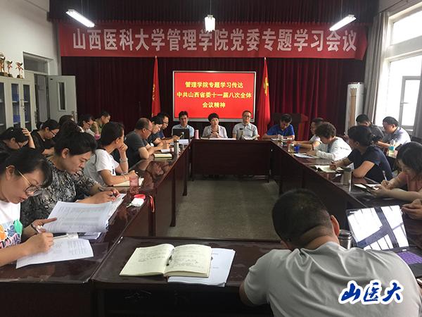 8月23日下午,管理學院在學院會議室召開理論學習會議,專題學習傳達中共山西省委十一屆八次全體會議精神。學院黨政領導和全體教職工參加了學習,院長程景民主持了會議。
