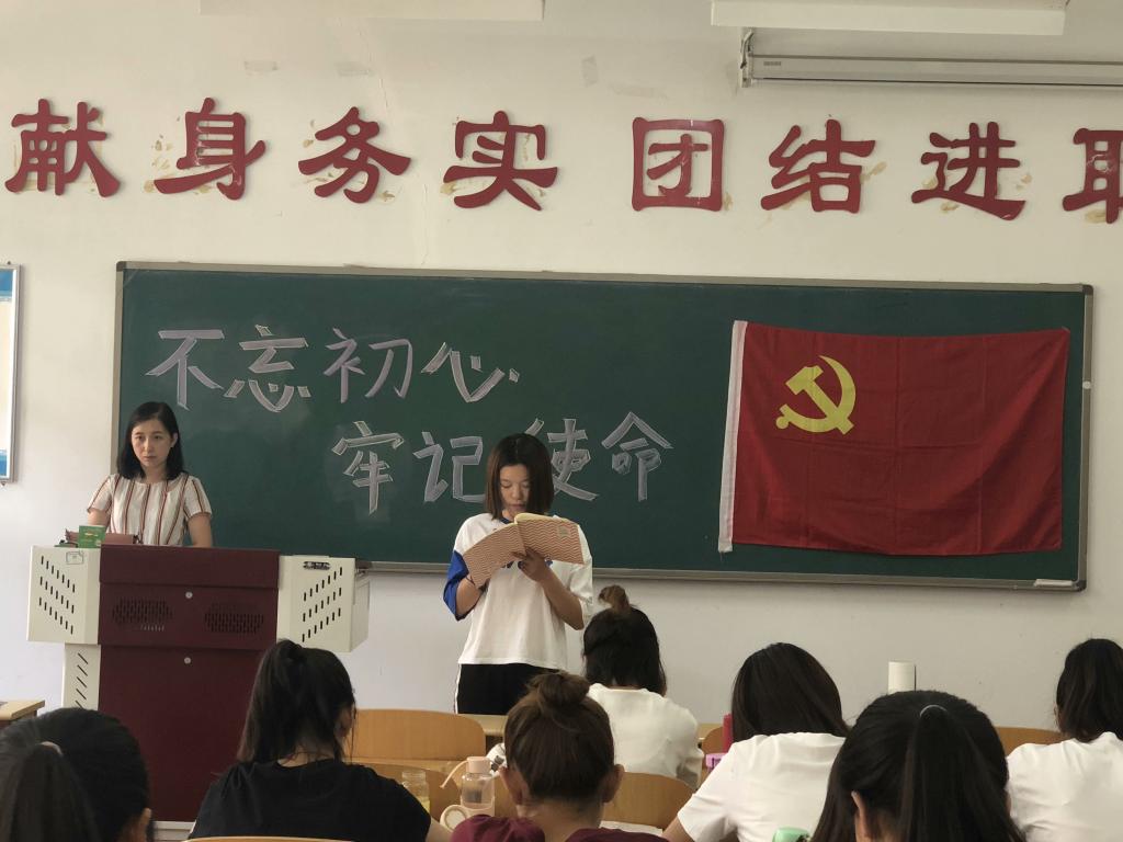 活動開始,郭佳幸同志帶領大家回顧了中央“不忘初心、牢記使命”主題教育工作會議主要內容,分析了對全黨開展主題教育作出全面動員部署的重要性。她分享了此次會議中習近平總書記的重要講話,并提出支部黨員及發展對象要增強“四個意識”、堅定“四個自信”、做到“兩個維護”,認真學習、深刻領會習近平總書記重要講話精神,以高度的政治自覺、思想自覺、行動自覺開展好“不忘初心、牢記使命”主題教育,建立優秀的黨支部。