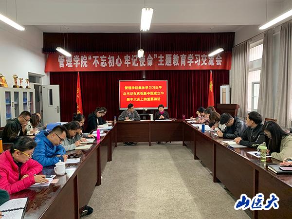 李紅梅在總結中指出,習近平總書記重要講話深刻闡明新中國70年來創造的人間奇跡,豪邁展望了中華民族偉大復興的光明未來,是指引我們在新的偉大征程中不斷奪取新的更大勝利的行動指南,是做好當下和今后各項工作的重要遵循。她要求,各黨支部和廣大黨員干部要結合“不忘初心、牢記使命”主題教育,采取多種形式,進一步組織好學習交流活動,深刻認識把握新中國成立以來的光輝歷程、偉大成就和寶貴經驗,進一步凝聚思想共識,傳承奮斗精神,做到知史愛黨、知史愛國。要以習近平新時代中國特色社會主義思想和黨的十九大精神為指導,以總書記在慶祝新中國成立70周年大會的重要講話為引領,堅定信心信念,立足本職崗位,在教書育人的工作實踐中細照篤行,全面落實,把“不忘初心、牢記使命”主題教育作為重大政治任務抓緊抓實抓好,以堅定的意志和飽滿的熱情干好各項工作,努力推動學院各項事業高質量發展。