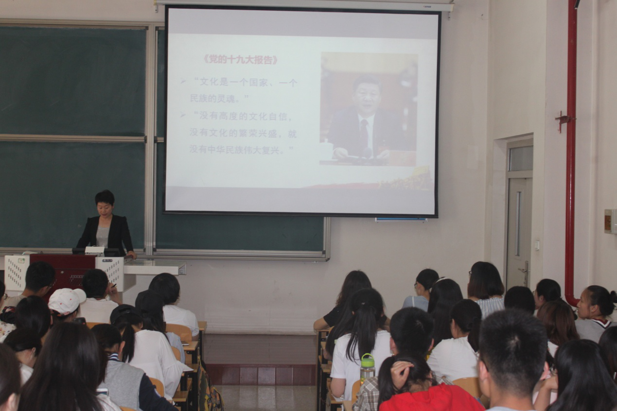 課堂上,李紅梅書記以“堅定文化自信,勇擔時代使命”為主題,與同學們分享了自己對新時代堅定文化自信的認識和思考。她從歷史邏輯的視角引導同學們充分認識樹立文化自信的重大意義,告訴大家大學生為什么要講文化自信;從理論邏輯的視角向同學們闡釋了新時代文化自信的基本內容是什么、有哪些;從方法邏輯的視角介紹了堅定文化自信的方法與路徑,告訴同學們“怎么做”;最后,勉勵同學們堅定文化自信、做到知行合一,勇擔歷史使命,爭當時代先鋒。