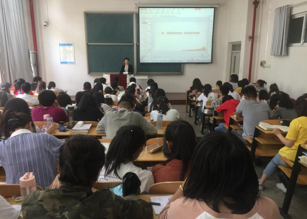 5月25日中午,中都校區篤行BA104教室,一堂特殊的思想政治理論課在此如期舉行。管理學院黨委書記李紅梅結合自己多年的工作學習經歷,正在和同學們共同探討新時代大學生堅定文化自信與擔當時代使命等問題。學院學生黨員、入黨積極分子、主要學生干部共計150多人參加了學習。