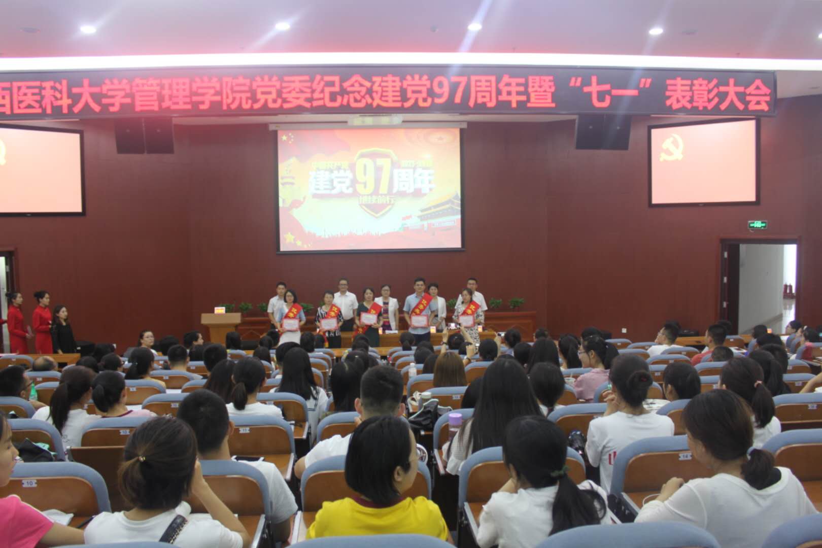 會議在莊嚴的國歌聲中正式開始。院黨委委員、副院長袁永旭宣讀表彰決定;賀培鳳等校院領導為獲得優秀共產黨員、優秀黨務工作者和先進基層黨組織榮譽稱號的個人和集體頒獎;教工第一黨支部書記于琦、學生黨員張琳分別代表受表彰先進黨支部和優秀共產黨員發言,暢談了對建黨97周年的認識和感想,表達了學院師生不忘初心跟黨走,牢記使命勇擔當的堅定信心。