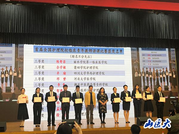 10月25-27日,中華護理學會舉辦了首屆全國護理院校臨床青年教師講課比賽。比賽由中華護理學會主辦,教育部高等學校護理專業教育指導委員會、山東省護理學會協辦,共有來自全國168所護理院校推薦的168名臨床護理教師分五個分賽場進行了激烈的比賽。我校護理學院臨床教師智燕華老師參加了本次大賽并在大賽中榮獲三等獎。