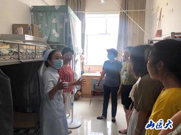 在實習單位領導和老師的陪同下,她們先后到實習生管理部門、學生宿舍進行實地走訪,并與實習單位領導和教師進行了座談,深入了解學生的實習管理、培訓、輪轉、考核等情況。與學生交流時,細心詢問了實習生們的工作、學習和生活等情況,就當前疫情防控的要點、學習角色的轉換、臨床學習的重點、日常生活中的安全等方面與學生進行了面對面的交流。她們勉勵同學們要充分把握實習機會,將所學知識有效地運用到臨床實踐中,在夯實專業基礎的同時著力提高自己的臨床實踐技能,以飽滿的姿態進入臨床,爭取在實習中取得優異成績。教學醫院領導對學生們的表現給予了充分的肯定。