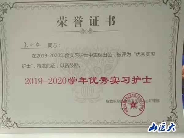沒有抱怨,無畏付出,更加積極主動(dòng)地學(xué)習(xí)防護(hù)知識(shí),在保證自己生命安全的同時(shí)竭盡全力保證病人的健康。在這個(gè)陌生而溫暖的北京市,有來自學(xué)?:透ǖ莢鋇囊笄泄刈?,有醫(yī)院的安全保障,大家彼此鼓勵(lì),配合科室的老師們完成了一個(gè)又一個(gè)艱巨的工作任務(wù),其中薛佳妍同學(xué)和吳小歡同學(xué)更是因?yàn)閷?shí)習(xí)期間的優(yōu)秀表現(xiàn)獲得“解放軍總醫(yī)院第五醫(yī)學(xué)中心優(yōu)秀實(shí)習(xí)護(hù)士”殊榮。