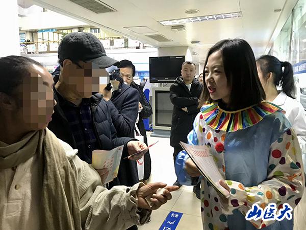 11月28日上午,護(hù)理學(xué)院“小丑醫(yī)生”志愿者服務(wù)隊(duì)、研究生支部黨員在院黨委書記金瑞華、副書記金姬的帶領(lǐng)下,來到我校第一醫(yī)院門診進(jìn)行開展志愿活動。