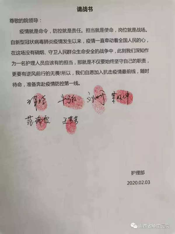 2020年2月7日,我在新聞上看到您在請戰(zhàn)書上的簽字,按下的鮮紅手?。盞男θ?、期盼的神情、親切的話語頓時浮現(xiàn)在我眼前,您總是說:“護(hù)理工作,沒有一件事是驚天動地的,病人把生命交給了我們,我們就要把平凡的小事做好。做護(hù)士需要一種堅持,做合格護(hù)士需要一種執(zhí)著,做優(yōu)秀護(hù)士需要一種信仰!”我想,正是您對護(hù)理職業(yè)堅定的信仰,才讓您義無反顧地奔赴戰(zhàn)?。∧俏頤嗆蟊不だ硌ё擁慕景粒?/p>