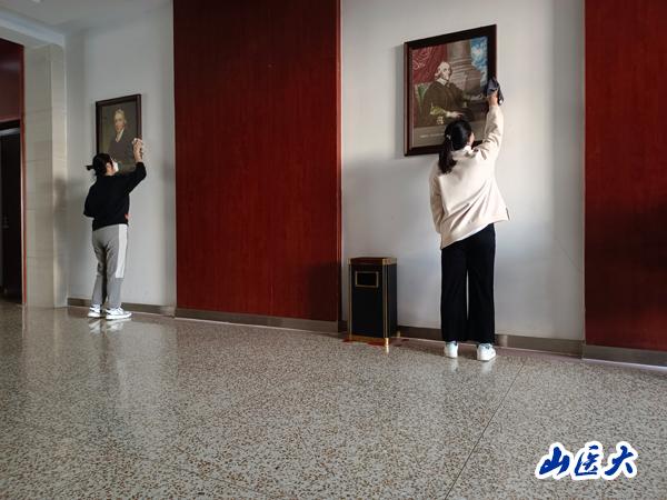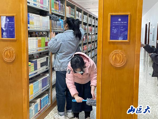 同學(xué)們分組在圖書館二層公共區(qū)域進(jìn)行衛(wèi)生打掃。協(xié)助圖書館工作人員整理桌面,仔細(xì)清理各走廊展板、消防栓、書架等等設(shè)施上的灰塵、垃圾;分類擺放同學(xué)歸還的書籍,協(xié)助搬運(yùn)書柜區(qū)域內(nèi)的雜物;同時(shí),進(jìn)行各樓層的綠植護(hù)養(yǎng)。