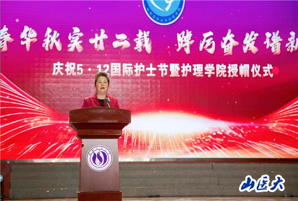 姜小鷹向學院全體師生送上了節日的祝福。她強調護士是時刻與生命同行的人,是關注健康和愛的使者。她鼓勵全體護理人員不僅要站在護理的第一線,也要站在變革的第一線。在平凡的護理工作崗位上,傳承和發揚“科學、人文、奉獻”的南丁格爾精神。