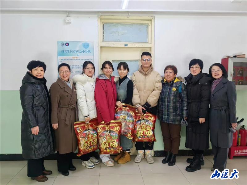 2月2日上午,我校護理學院領導班子全體成員來到迎澤校區,為春節新疆籍留校實習生發放暖心禮包,為寒冬添上一抹暖意。