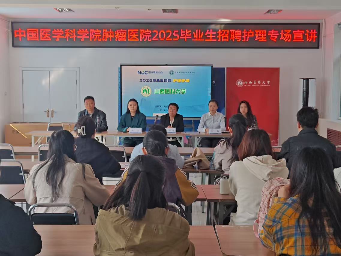 為切實做好2025屆畢業(yè)生就業(yè)工作,拓寬畢業(yè)生求職渠道,搭建用人單位與畢業(yè)生的雙向?qū)悠脚_,10月28日下午,護(hù)理學(xué)院在迎澤校區(qū)就業(yè)中心一層(圖書館南側(cè))舉辦了2025屆護(hù)理畢業(yè)生招聘專場招聘會。本次活動是由中國醫(yī)學(xué)科學(xué)院腫瘤醫(yī)院和c7c7.app護(hù)理學(xué)院聯(lián)合舉辦,中國醫(yī)學(xué)科學(xué)院腫瘤醫(yī)學(xué)院腫瘤醫(yī)院團(tuán)委副書記高蘭、護(hù)士長劉淼、護(hù)士長胡夢蝶以及c7c7.app護(hù)理學(xué)院黨委書記董海濤、黨委副書記胡鑫及輔導(dǎo)員王斌參加此次招聘會。活動吸引了80余名護(hù)理學(xué)專業(yè)學(xué)生積極報名參與。