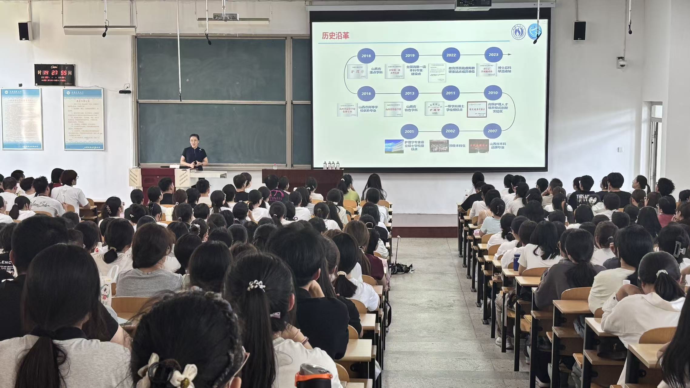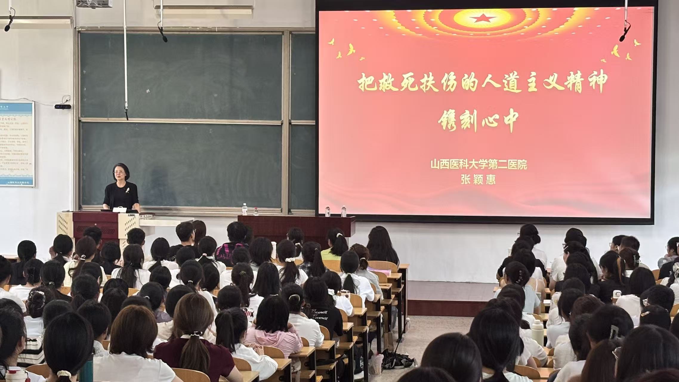 副院長張穎惠以“把救死扶傷的人道主義精神鐫刻心中”為主題進行南丁格爾精神宣講,結合自身醫院工作經歷分享感悟。她寄語新生:在實踐中檢驗真知、提升本領;與人相處常懷感恩寬容;科研實踐中敢于提問探索;生活中珍視身心健康、嚴于律己,力爭在求學從醫路上“學有所成、德有所立”,讓青春在山醫綻放光彩。