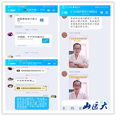 學院立足學科優勢,創新成立了線上“大學生心理成長俱樂部”和“禮敬中華優秀傳統文化小組”。小組成員涵蓋年級學生會干部、各班班長、各宿舍宿舍長以及對中華優秀傳統文化感興趣的學生共百余人。分別以“分享快樂·分擔憂愁”和“繼承優秀傳統文化,提高醫學生人文素養”為宗旨,利用寓教于樂的方式,讓學生廣泛參與到豐富多樣的活動形式中,在一張一弛中舒緩心理壓力,在真聽真看中領悟傳統文化,在真知真學中傳承優良精神,活動形式包括心理健康知識宣講、心理游戲、讀書會、心語沙龍、個體咨詢、電影心理賞析、誦讀、寫作、攝影、微電影、短視頻(快手、抖音)、快閃等;顒拥拈_展受到學生的一致好評,同學們表示,此次心靈之旅讓自己更加充滿信心,同時也激勵自己為抗疫貢獻青春力量。
