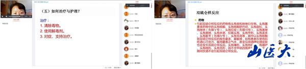 博采眾長(zhǎng)。《急重癥護(hù)理學(xué)》疫情期間積極研討授課方案,為培養(yǎng)學(xué)生應(yīng)用知識(shí)、分析問(wèn)題、解決問(wèn)題的能力。為使教學(xué)進(jìn)度不延遲、教學(xué)質(zhì)量不縮水,實(shí)踐課嘗試使用學(xué)習(xí)通直播的方式,采用案例式的教學(xué)方式。杜娟結(jié)合臨床典型真實(shí)病例的接診、處理、發(fā)展,以及突發(fā)狀況的處理,把“胸腔閉式引流的嚴(yán)重并發(fā)癥”和“雙流侖樣反應(yīng)”給學(xué)生進(jìn)行了精彩的講解,并與學(xué)生進(jìn)行了互動(dòng),學(xué)生對(duì)急診、急救工作及專業(yè)知識(shí)及技能得到進(jìn)一步的認(rèn)識(shí)、學(xué)習(xí)和提高,同時(shí)感受到了杜娟淵博的理論知識(shí)和豐富的臨床經(jīng)驗(yàn)。