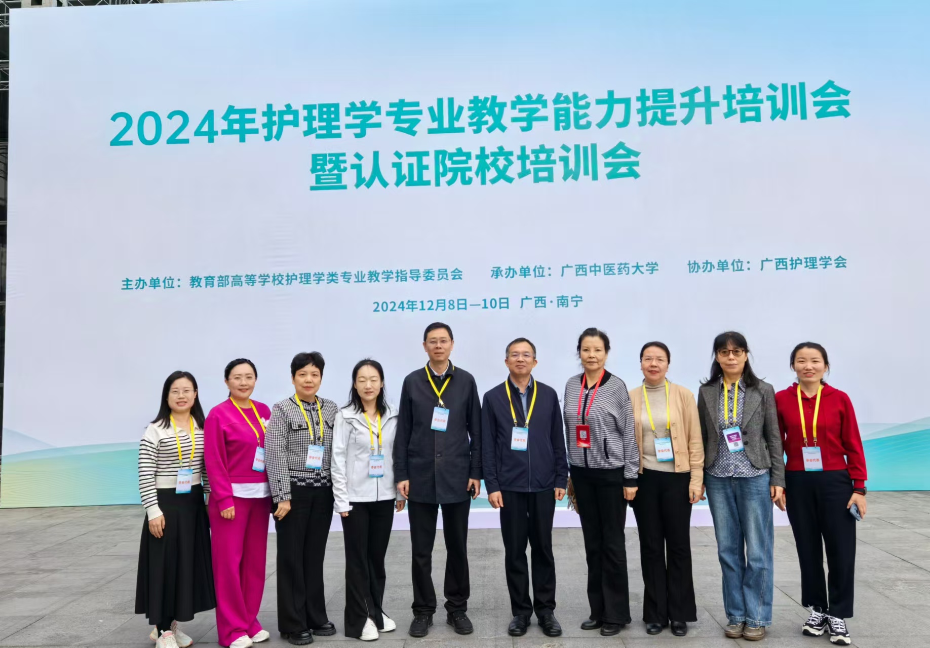 2024年12月8日至10日,教育部高等學校護理學類專業教學指導委員會在廣西壯族自治區南寧市成功舉辦了2024年護理學專業教學能力提升培訓會暨認證院校培訓會。我校高度重視,校黨委常委、副校長焦向英親自帶隊,教務部部長覃凱、副部長秦潔、護理學院副院長郭錦麗、評估中心及部分骨干教師參加了此次會議。