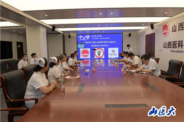 在開診儀式上,智善公益基金會(huì)秘書長(zhǎng)苗強(qiáng)通過線上視頻連線致辭。山西省醫(yī)學(xué)會(huì)骨科分會(huì)主任委員、第二醫(yī)院院長(zhǎng)趙斌教授作講話。第二醫(yī)院骨科主任馮毅致辭。第二醫(yī)院骨科脊柱二病區(qū)主任趙勝教授主持開診儀式。
