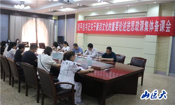 為全面推進習近平總書記關于廉潔文化的重要論述“三進”工作,7月7日上午,校黨委參加馬克思主義學院組織的習近平總書記關于廉潔文化的重要論述進思政課集體備課會,指導“三進”工作。校黨委常委、紀委書記韓樹彪出席并講話,校黨委常委、宣傳部部長陳顯久,校紀委副書記郝曉娟、趙國卿出席會議,校紀委丁朝霞和馬克思主義學院全體教師參加會議。備課會由馬克思主義學院直屬黨支部書記董海濤主持。