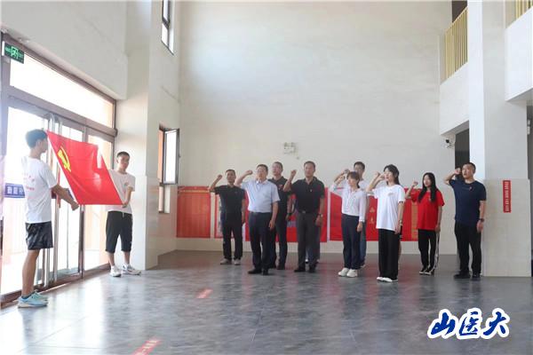 座談會后,王宏偉帶領師生黨員重溫了入黨誓詞。師生高舉右手,莊嚴宣誓,表達著聽黨話、跟黨走的堅定信念。