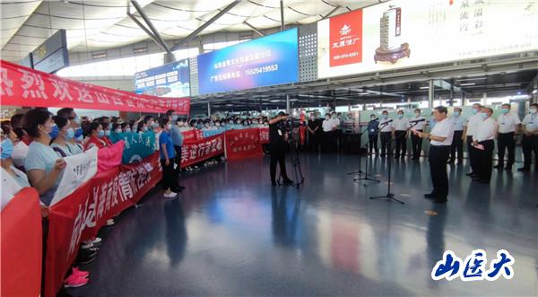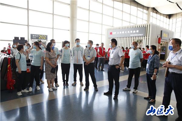 8月15日,第一醫院接到山西省衛生健康委員會緊急馳援海南抗疫的指令后,迅速集結了8名醫生、40名護士組成援瓊醫療隊,于8月16日中午14:30在太原武宿機場乘專機出發,與山西省其他醫療機構共同組成的500余名隊員奔赴海南,第一醫院黨委副書記吳旭東帶隊出征。第一醫院黨委書記徐鈞、院長張瑞平、副院長韓清華和部分職能科室負責人到機場為他們送行。