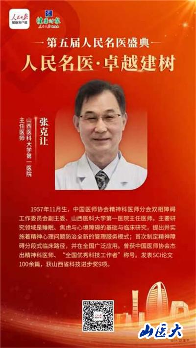 8月16日,由人民日?qǐng)?bào)健康客戶端、健康時(shí)報(bào)主辦的第五屆人民名醫(yī)盛典(原國之名醫(yī)盛典)在人民日?qǐng)?bào)社舉行,來自全國117個(gè)學(xué)科的296名優(yōu)秀醫(yī)生代表入選第五屆人民名醫(yī)系列榜單。榜單設(shè)置特別致敬、卓越建樹、優(yōu)秀風(fēng)范、青年新銳四大類別。我校第一醫(yī)院精神衛(wèi)生科張克讓教授入選第五屆“人民名醫(yī)·卓越建樹” 榮譽(yù)稱號(hào),第二醫(yī)院消化內(nèi)鏡室主任原麗莉入選第五屆“人民名醫(yī)?優(yōu)秀風(fēng)范”榮譽(yù)稱號(hào)。