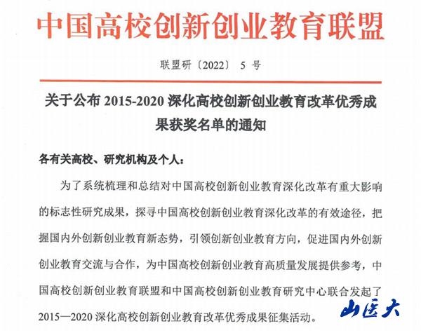 8月23日,中國高校創(chuàng)新創(chuàng)業(yè)教育聯(lián)盟、中國高校創(chuàng)新創(chuàng)業(yè)教育研究中心公布2015-2020深化高校創(chuàng)新創(chuàng)業(yè)教育改革優(yōu)秀成果,我校多項(xiàng)創(chuàng)新創(chuàng)業(yè)教育成果獲獎(jiǎng)。