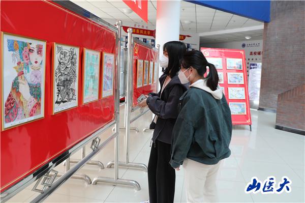 本次展出的優秀藝術作品,是從全校7000多名同學完成的作品中選出,涵蓋了書法、手繪、手抄報、攝影、微視頻、手工作品等不同的類型。這些作品取材現實,書寫情懷,定格當下,展現了新時代十年共圓中華民族偉大復興中國夢的生動實踐,通過豐富的色彩、完美的造型和源于生活的感悟,彰顯了鮮明的主題和精湛的制作技藝,表達了對新時代的熱情謳歌和深情禮贊,師生們從中可以深刻感受到新時代這十年巨變帶來的心靈震撼。這些作品,體現了山醫學子深入學習宣傳貫徹黨的二十大精神,與黨同心、與時代共振的政治覺悟,同時也是一次以原創作品宣講黨的二十大精神的主題活動。